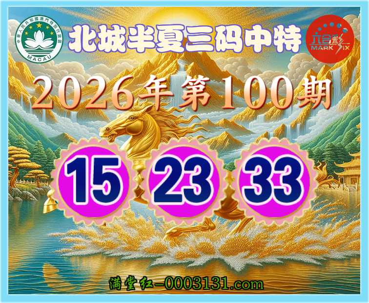 100期: 北城半夏 👩‍🌾三码中特👩‍🌾【15.23.33】开:33